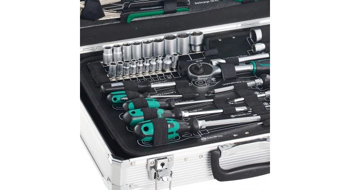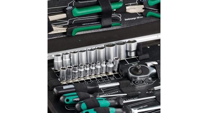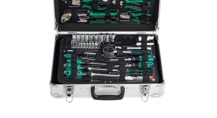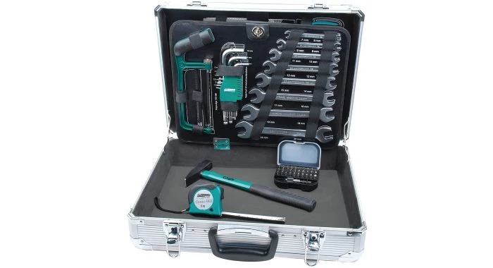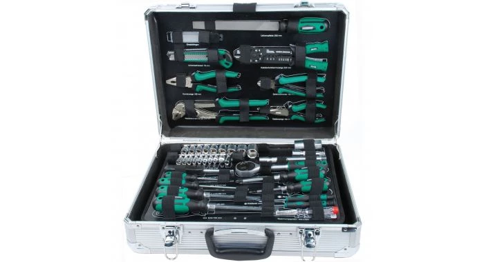 Cet ensemble d’outils de 106 pièces de Brüder Mannesmann, composé d’outils à main de tailles diverses et au design ergonomique, convient pour une variété de travaux de bricolage et de réparation à la maison, dans l’atelier ou le garage. Il est idéal pour les professionnels ainsi que pour les amateurs de bricolage. Parce que ces outils sont fabriqués à partir d’acier chrome-vanadium habilement traités thermiquement, cet ensemble est très robuste et durable. Ces outils sont faciles à transporter et n’occupent pas beaucoup d’espace de rangement dans leur mallette de transport robuste. La livraison comprend 106 outils (une paire de pinces, une paire de pinces mixtes, une paire de fraise diagonale, une paire de pinces aiguille-pointe, une paire de pinces à sertir, un couteau utilitaire, des lames de rechange, un fichier, une scie à métaux, des lames de scie à métaux remplaçables, des tournevis, des tournevis de précision, un testeur de tension, un marteau d’ingénieur, un ruban à mesurer, des clés ouvertes, des clés hexagonales, une clé à cliquet, un tournevis multi-embouts, des extensions, des douilles hexagonales, un adaptateur d’embout, des embouts, un adaptateur d’embout à changement rapide).