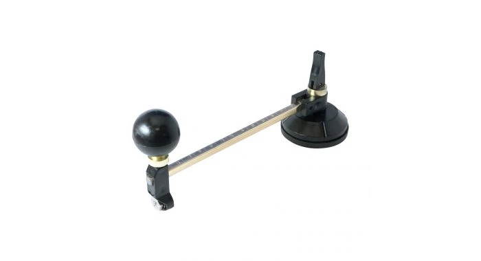 Permet de réaliser des coupes dans le verre d’une épaisseur de 2 à 8 mm, avec un diamètre de 65 à 300 mm. 6 lames robustes en carbure de tungstène fixées sur une tourelle rotative. La ventouse de 55 mm en caoutchouc fixe le bras de support coupant. Poignée pivotante garantissant un mouvement circulaire fluide. Tige d’acier laitonné à graduations métriques gravées.