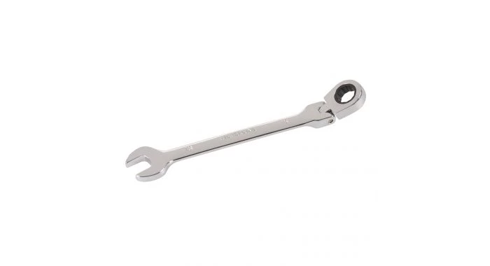 Clé mixte à cliquet de dimensions métriques. En acier chrome-vanadium durci et revenu avec fini poli miroir. Chromée, pour résister à la corrosion. Cliquet avec angle d’action de 5°. Tête pivotante à 180°. Facilite l’accès à boulons et écrous présents dans des espaces exigus.