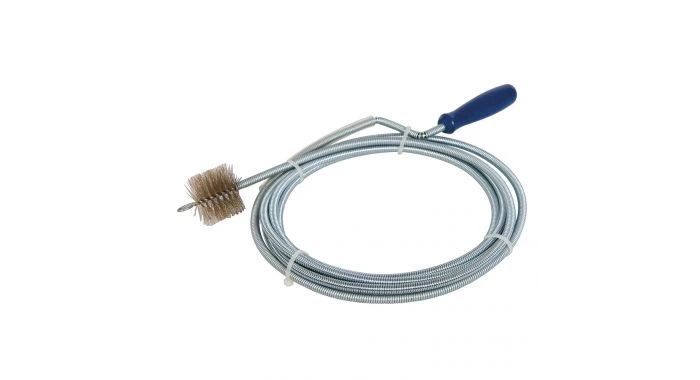 Poignée en plastique robuste et fil métallique en tire-bouchon à ressort en acier avec extrémité en brosse. Fil métallique à ressort galvanisé de 6 mm de diamètre. Permet d’éliminer tous dépôts et résidus accumulés dans les canalisations d’éviers, les siphons ou dans les conduites sanitaires. Sert également à déboucher d’autres conduites d’eau dans la maison.