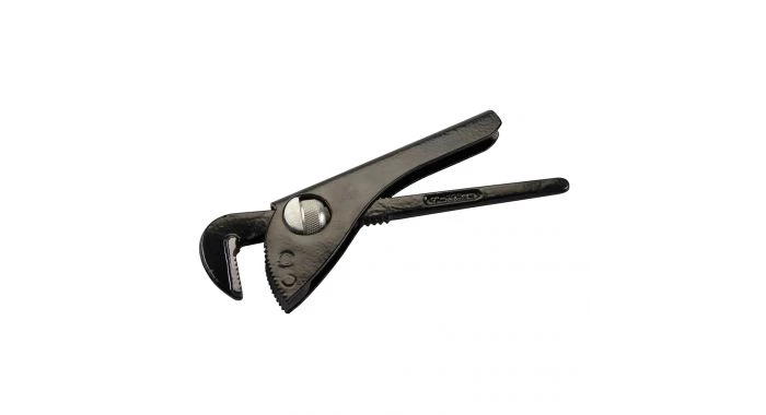Pince serre-tube polyvalente appliquant un serrage supplémentaire sous l’effet de la pression exercée par la main. Vis de réglage moletée permettant de régler l’outil d’une seule main.