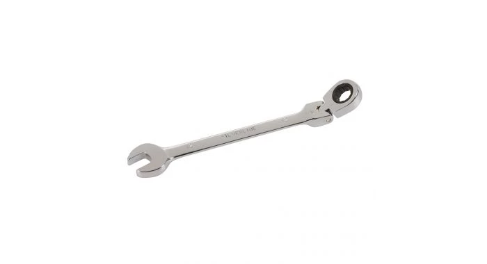 Clé mixte à cliquet de dimensions métriques. En acier chrome-vanadium durci et revenu avec fini poli miroir. Chromée, pour résister à la corrosion. Cliquet avec angle d’action de 5°. Tête pivotante à 180°. Facilite l’accès à boulons et écrous présents dans des espaces exigus.