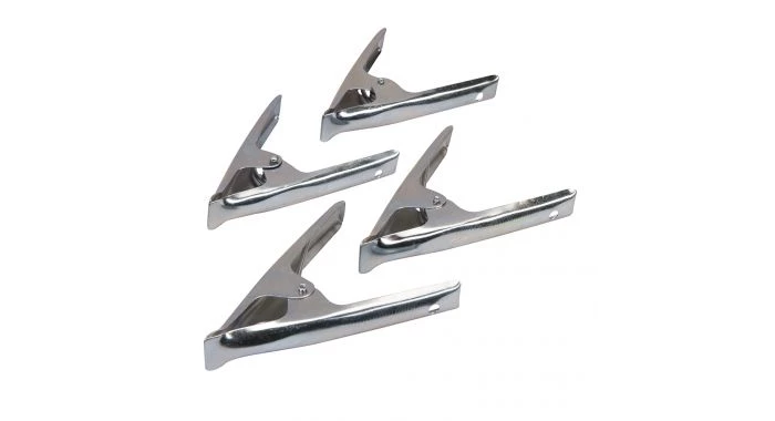 Pinces à ressort polyvalentes permettant de retenir toiles, bâches et dispositifs de protection divers. Corps en acier résistant avec ressort conçu pour un usage intensif. Particulièrement utiles sur les marchés.
