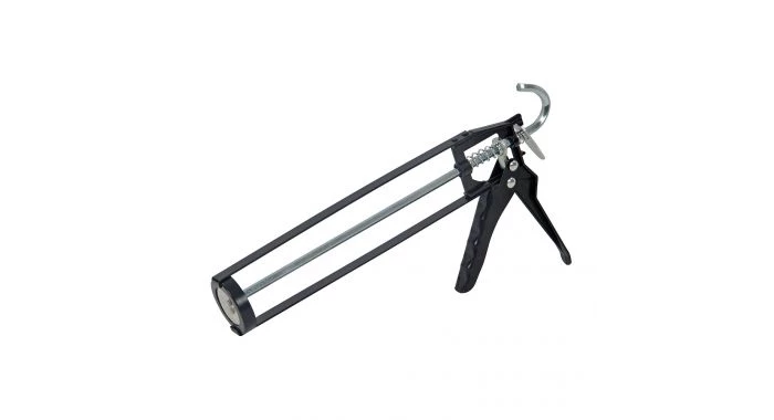 Support squelette et poignée en acier pressé, à piston et poussoir d’arrêt de la pression. Pour l’application de mastic d’étanchéité et de mastic de fixation.