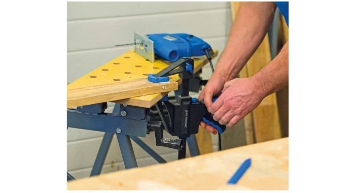 Serre-joints usage intensif extra-large. Utilisation d’une seule main et bouton de déblocage rapide. Peut s’utiliser comme serre-joint ou écarteur.