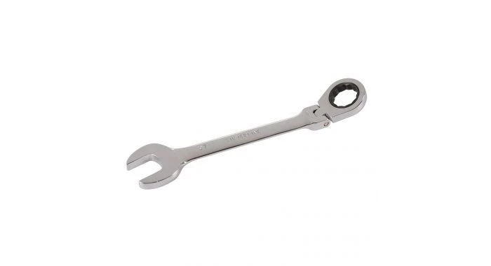 Clé mixte à cliquet de dimensions métriques. En acier chrome-vanadium durci et revenu avec fini poli miroir. Chromée, pour résister à la corrosion. Cliquet avec angle d’action de 5°. Tête pivotante à 180°. Facilite l’accès à boulons et écrous présents dans des espaces exigus.