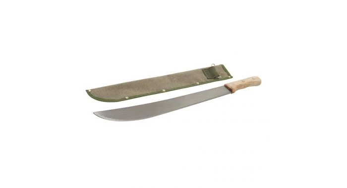 Machette à lame droite en acier trempé et manche en bois. Livrée avec étui en nylon à boucle d’accrochage ceinture. Idéale pour le débroussaillage. Longueur de la lame 450 mm.